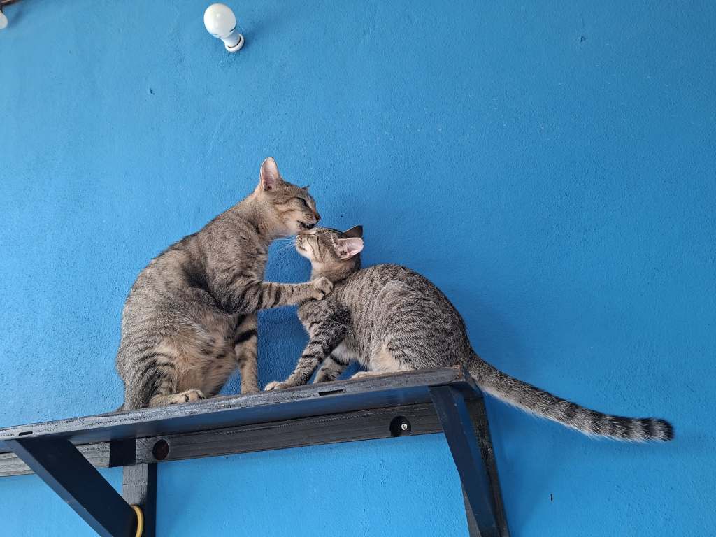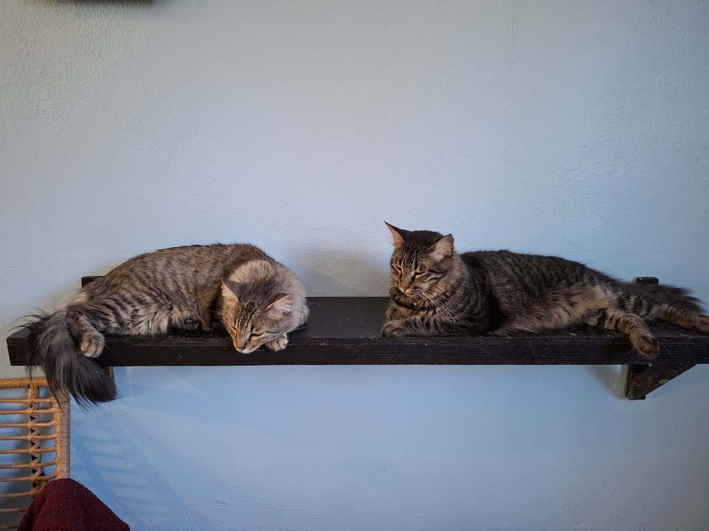 This is Marty McFly and his sister Jennifer. They have Main Coon in there DNA, and are rather large cats. They have a brother named Spicy who’s a little shy. All of them have been sterilized, up to date on vaccines. If you are looking for a cool companion, one of these beauties might be a fit. Approximately 2 years old.